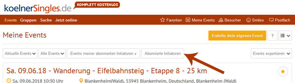 Möglichkeit 3: Wenn du gerade in einem Event des Initiators bist, kannst du auch einfach auf „Events des Initiators“ klicken und dann ebenfalls auf den Button „Initiator abonnieren“.