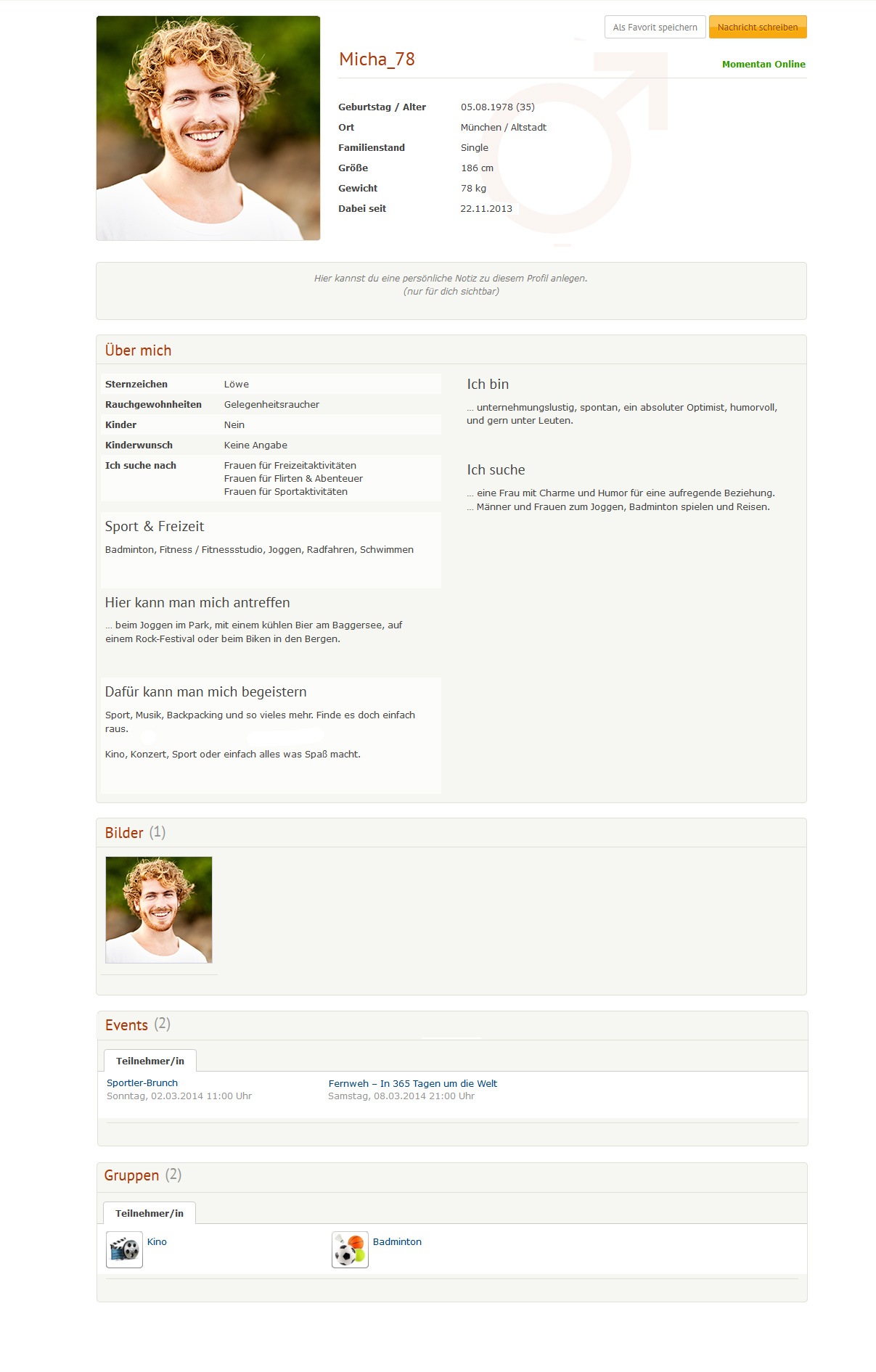 Dein Profil bei der Singlebörse funktioniert wie eine Visitenkarte und ein gutes Profil entscheidet oft darüber, ob ein Kontakt zustande kommt oder nicht. Deshalb haben wir jetzt für alle Kölner Singles die neue Profilansicht online gestellt. Alle wichtigen Infos siehst du jetzt auf einen Blick. Die Bilder sind größer geworden, damit du noch besser sehen kannst, wie die anderen Mitglieder aussehen. Vielleicht ist das ja die richtige Gelegenheit, dein eigenen Profilbild auf den neuesten Stand zu bringen?